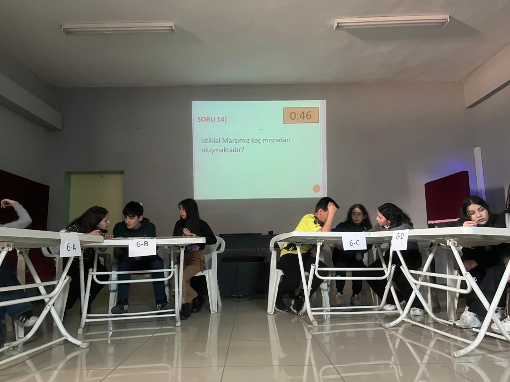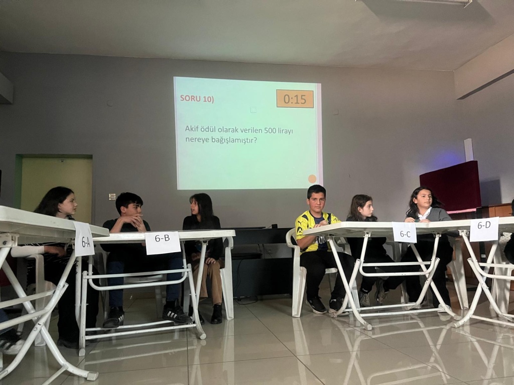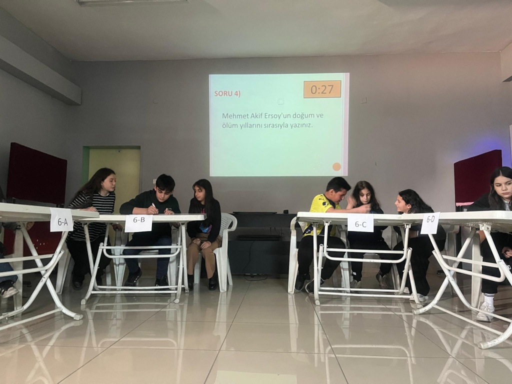 6. sınıflar arası "Mehmet Akif Ersoy ve İstiklal Marşı" konulu bilgi yarışması düzenlendi.