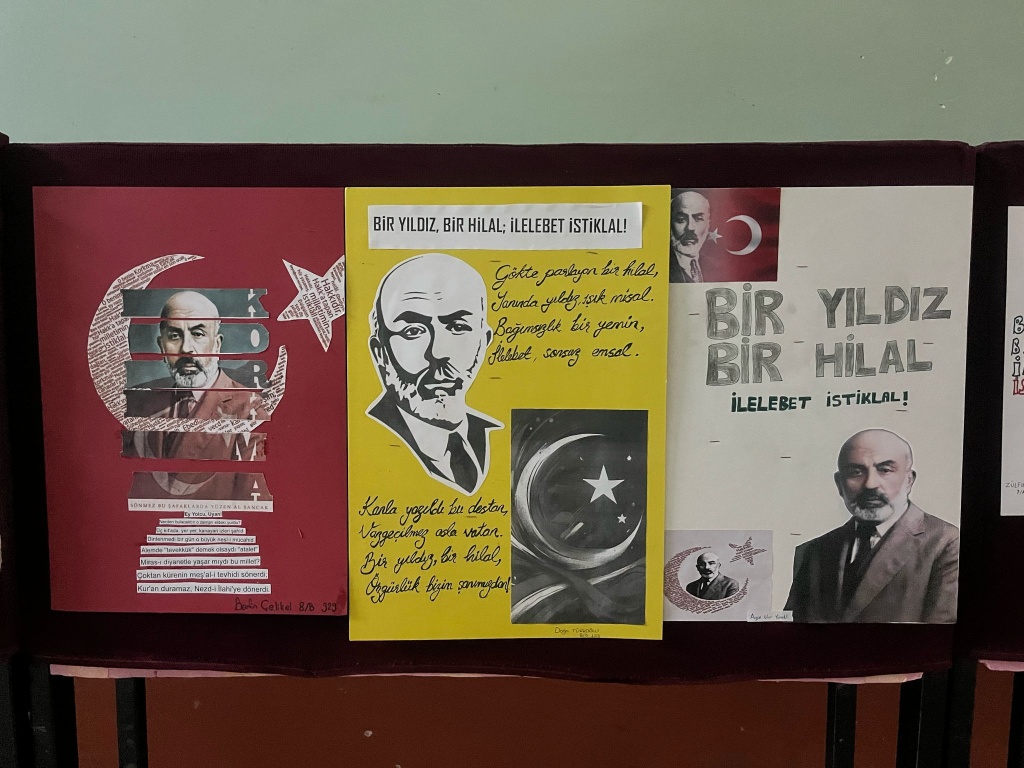 "Bir Yıldız, Bir Hilal, İlelebet İstiklal" temalı afişler okul panolarımızda sergilendi.