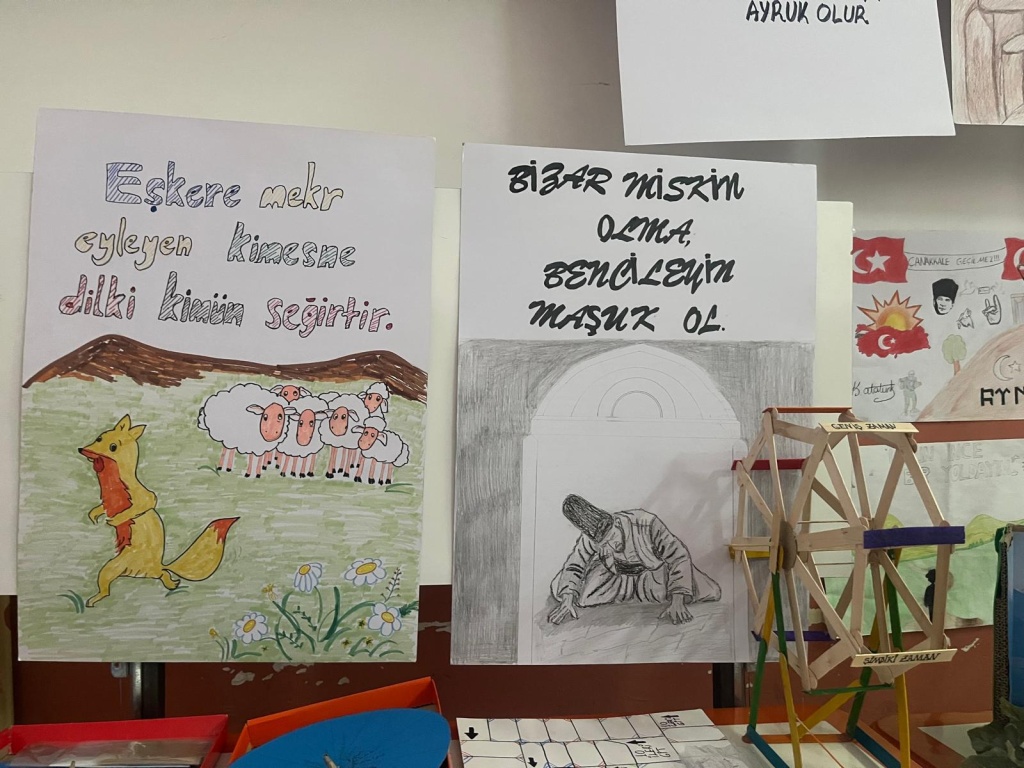 Teknoloji ve Tasarım ve Görsel Sanatlar derslerinde yapılan etkinlikler ile "Dilimizin Zenginlikleri" projesi kapsamında yapılan etkinlikler sergilendi. Emeği geçen Teknoloji ve Tasarım dersi öğretmenimiz Münire ŞERBETÇİ'ye, Görsel Sanatlar dersi öğretmenimiz Serap ÇELİKEL'e, "Dilimizin Zenginlikleri" projesinde görev alan Emine TEKİN, Ayşe DOĞAN ve Sıddıka Dilek ÖZEN öğretmenlerimize ve öğrencilerimize teşekkür ediyoruz.